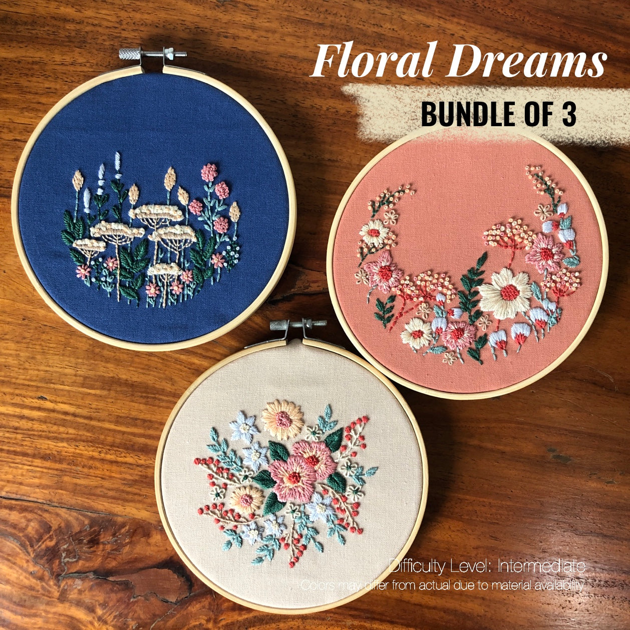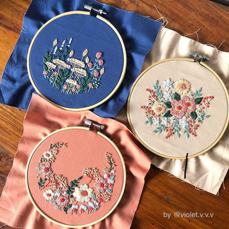 Pick up a new hobby! Embroidery is fun, relaxing and beautiful. This no-pressure beginner to intermediate kit has all you need to make 3 THREE embroidery pieces.