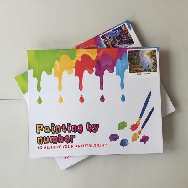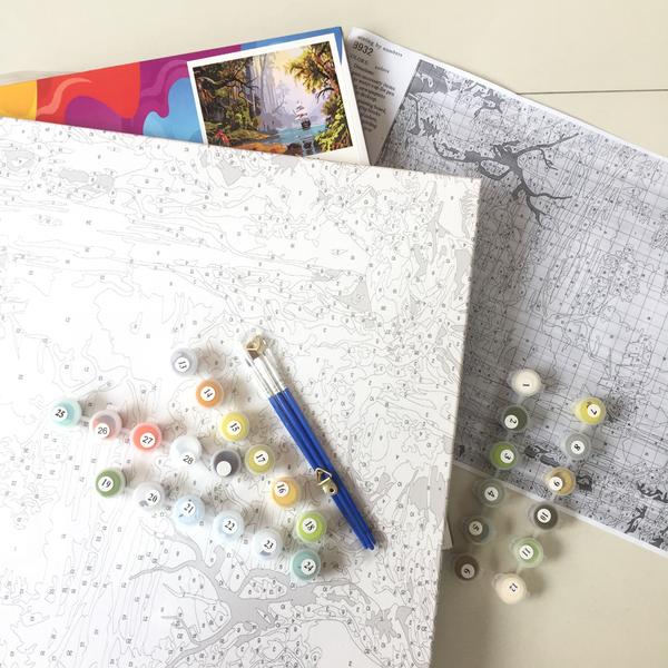 This kit includes a pre-printed canvas with guides and numbers to help you paint with the right colors.